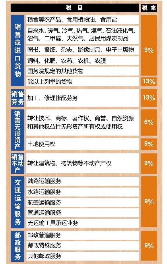 小規模及適用簡易計稅的一般納稅人增值稅稅率表